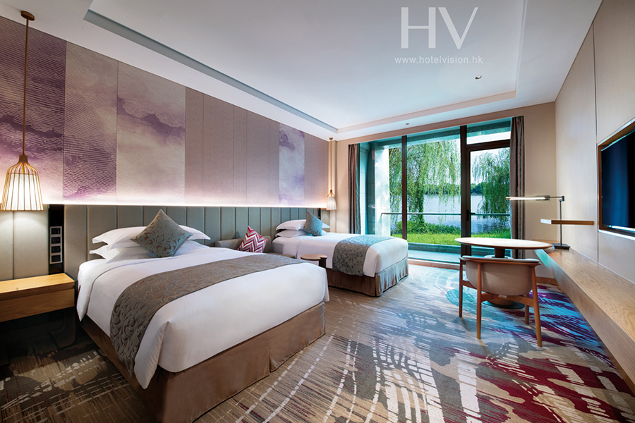 酒店拥有各类风格迥异的景观客房,摩登时尚。徜徉于客房专属户外露台,让您身临绿荫湖景之中感受城市中别样的闲暇与舒适;酒店拥有完备,现代的会议及宴会设施,1600㎡灵活会议空间,800㎡无柱式豪华宴会厅配备超高清LED电子屏,6间不同规格的多功能厅以及户外婚礼草坪,满足您从高端会务,盛大宴会及婚礼到私人聚会的一切需求。